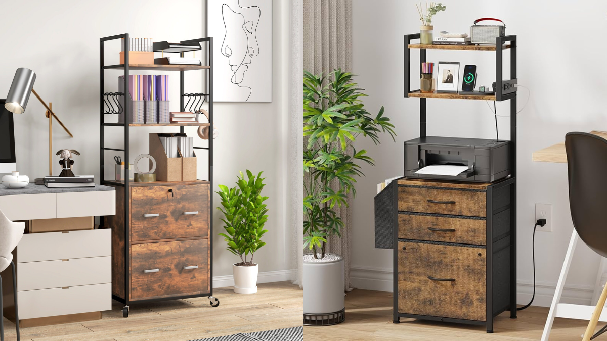 Perfect for smaller spaces, this model combines the essential features of a file cabinet with the practicality of a multi-tiered printer stand.
