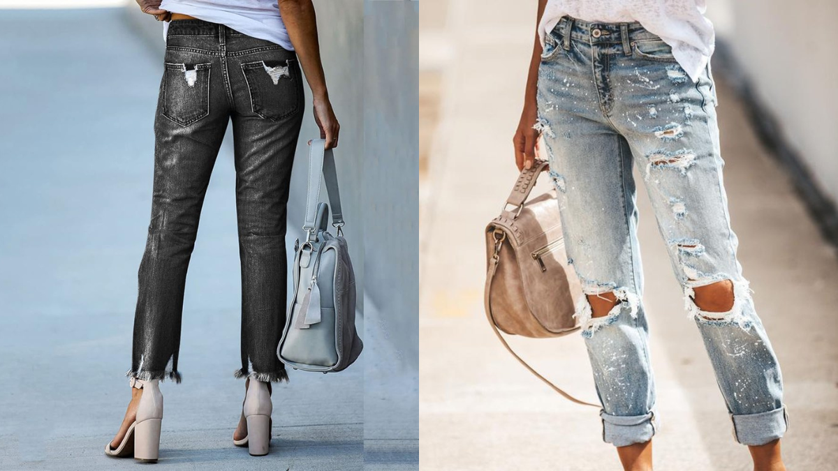 • Distressed Boyfriend Cuts: Ripped knees, frayed hems, and washed-out finishes speak to effortless cool. It keeps distressing balanced—enough to make a statement but not so much that the jeans feel impractical.