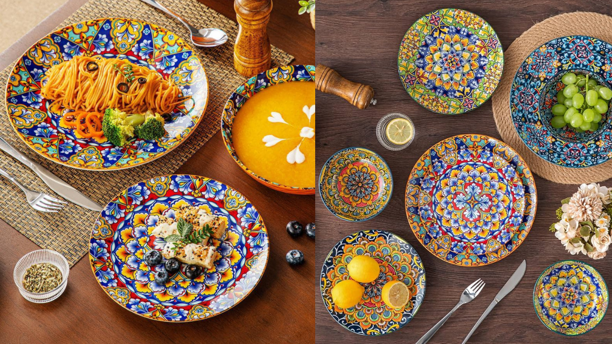 Bohemian & Playful – Think bright colors, hand-painted details, and lively patterns. Sets like Simi or Bonita instantly inject warmth and personality into your table. They work beautifully for casual dinners with friends, Sunday brunches, or any gathering where you want the table to feel inviting.