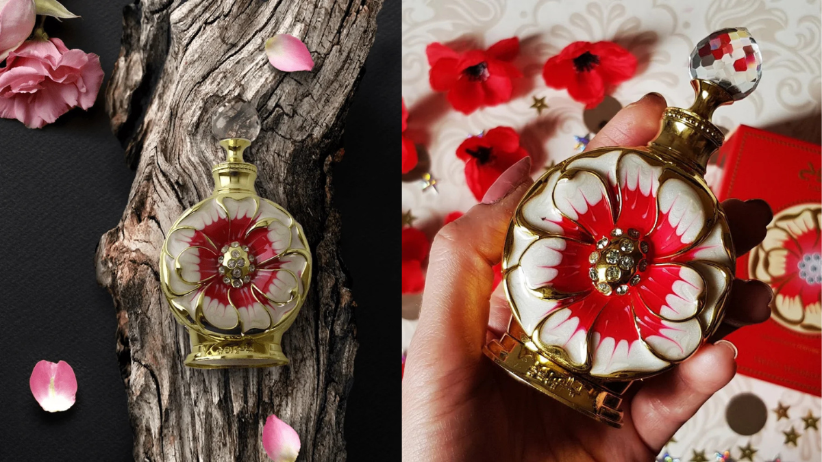 Swiss Arabian never skimps on presentation. Housed in a red-and-gold glass bottle with floral motifs and a crystal-like stopper, the design is both luxurious and feminine.
